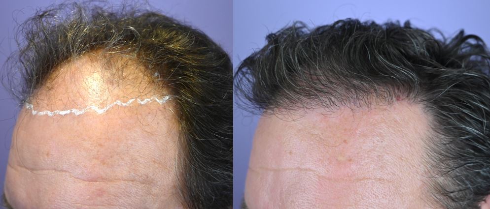 On the day of surgery, Dr. Rogers transplanted 1505 one-to-four hair grafts. He also started on finasteride 1mg daily and oral minoxidil 2.5mg daily to strengthen his existing hair and prevent or at least delay future hair loss.