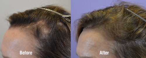 Does Rogaine really work? Well with medical therapy the answer is always, “It Depends”. Every patient responds differently to medical therapy and factors like age and degree of hair loss can impact the benefit. In this case we have a 69 year old female patient with hairline thinning in her bitemporal recessions. She started topical…